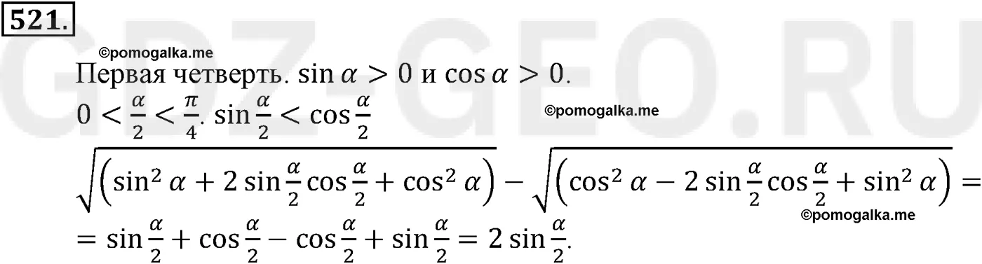 Доказать, что если 0 < a < пи/2 , то корень (1+sina) - корень (1-sina) = 2sina/2.