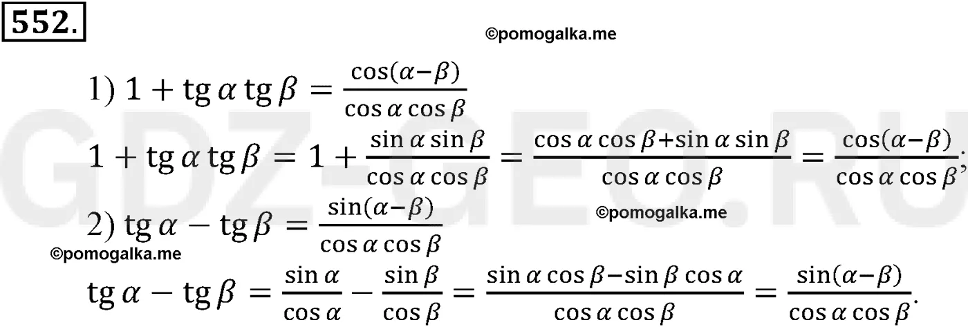 1) 1+tgatgb = cos(a-b)/coscosb;