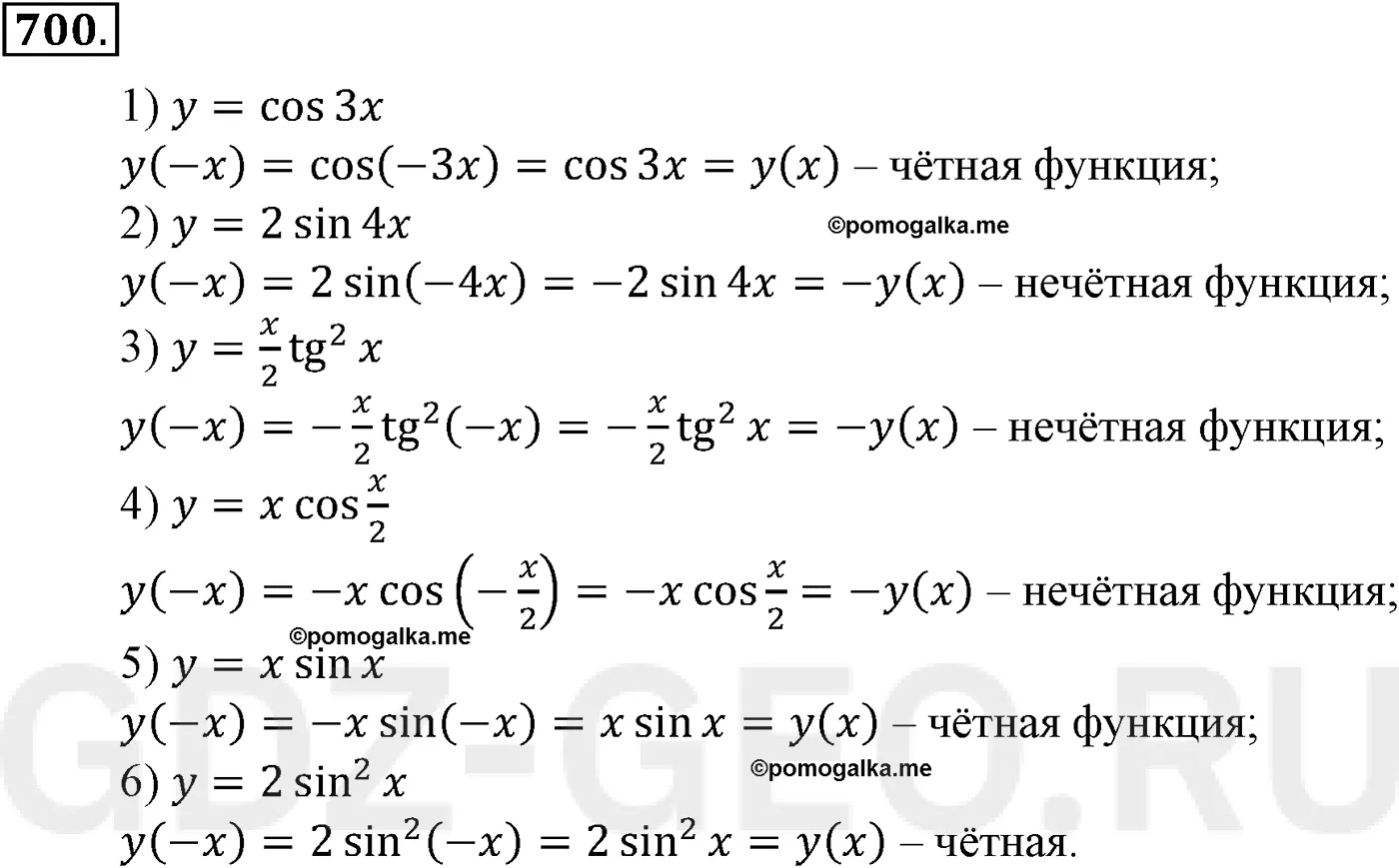 Выяснить, является ли данная функция чётной или нечётной (700—701).