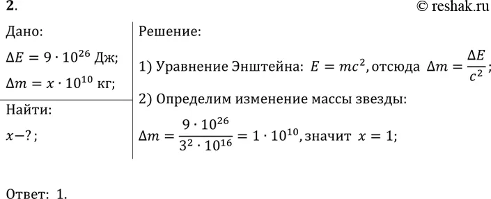 2. Звезда каждую секунжу испускат излучение с суммарной энергией около 9*10^26 Дж. В результате этого масса звезды ежесекундно уменьшается на дельта m= X * 10^10 кг. Определите значение X.