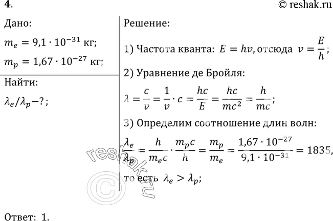 4. Электрон и протон движутся с динаковыми скоростями. У какой из этих частиц большая длина волны де Бройля?