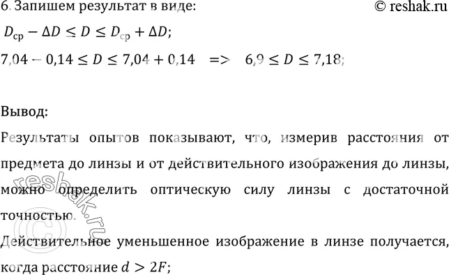 6. Запишите результат в следующем виде Dср-Дельта D<=D<=Dср+дельтаD.