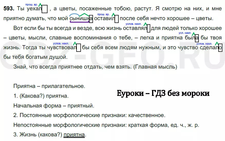 Что люб..тся, чем дыш..тся, Душа чем ваша полн..тся, То в голосе уелыш..тся, То в песенке припомн..тся. А мы споём о родине, С которой столько связано, С которой столько пройдено. Хорошего и разного! Тяжёлое забуд..тся, Хорошее остан..тся. Что с родиною сбуд..тся, То и с народом стан..тся.(И. Уткин)