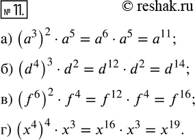 а) (a^3)^2 · a^5; б) (d^4)^3 · d^2; в) (f^6)^2 · f^4; г) (x^4)^4 · x^3.