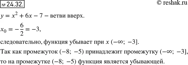 22.32. Докажите, что функция у = х2 + 6х - 7 является убывающей на промежутке (-8; -5).