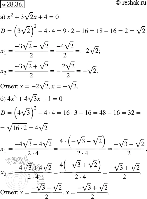25.36. а) х2 + 3у (корень 2)*х +4 = 0;