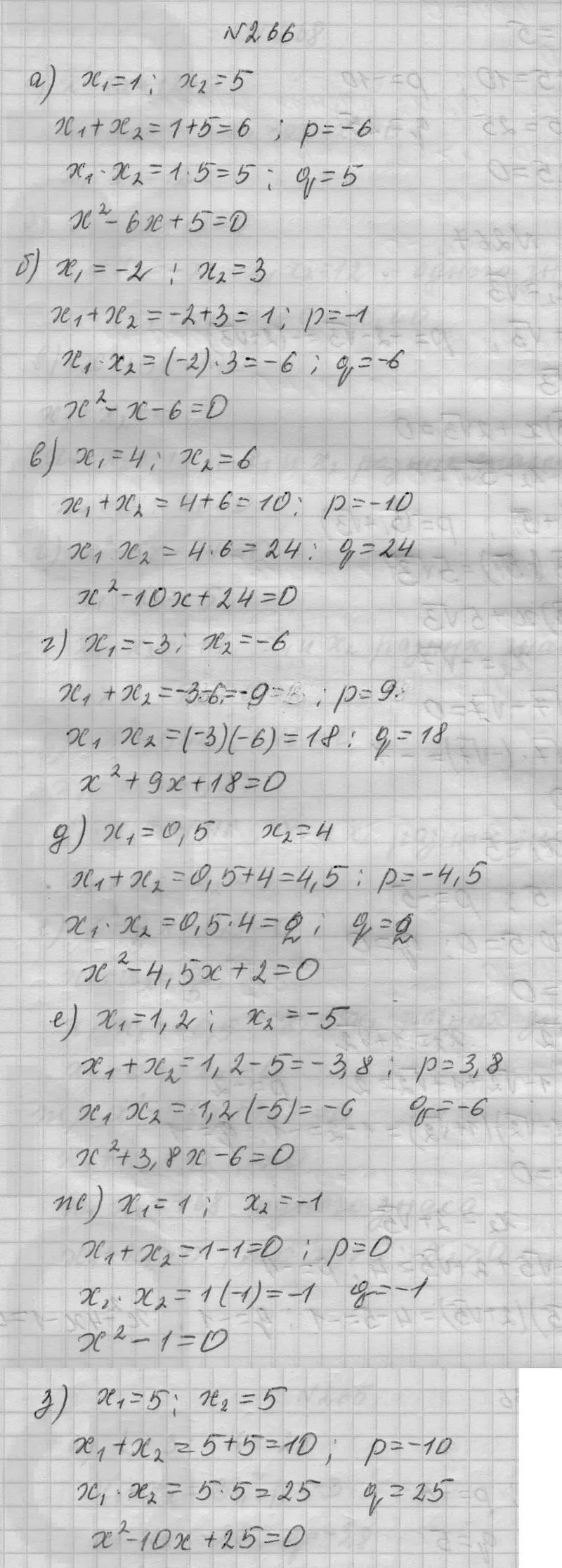 Составьте приведённое квадратное уравнение, если известны его корни: