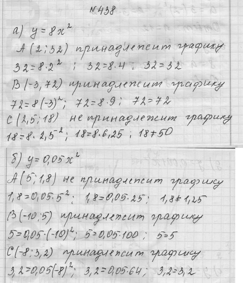 а) у = 8х2 точки А (2; 32), В(-3; 72), С(2,5; 18);