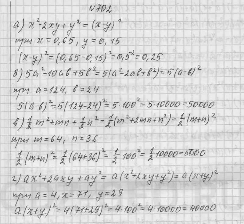 г) ах2 + 2аху + ау2 при а = 4, х = 71, у = 29.