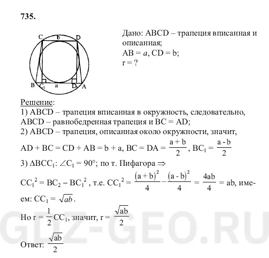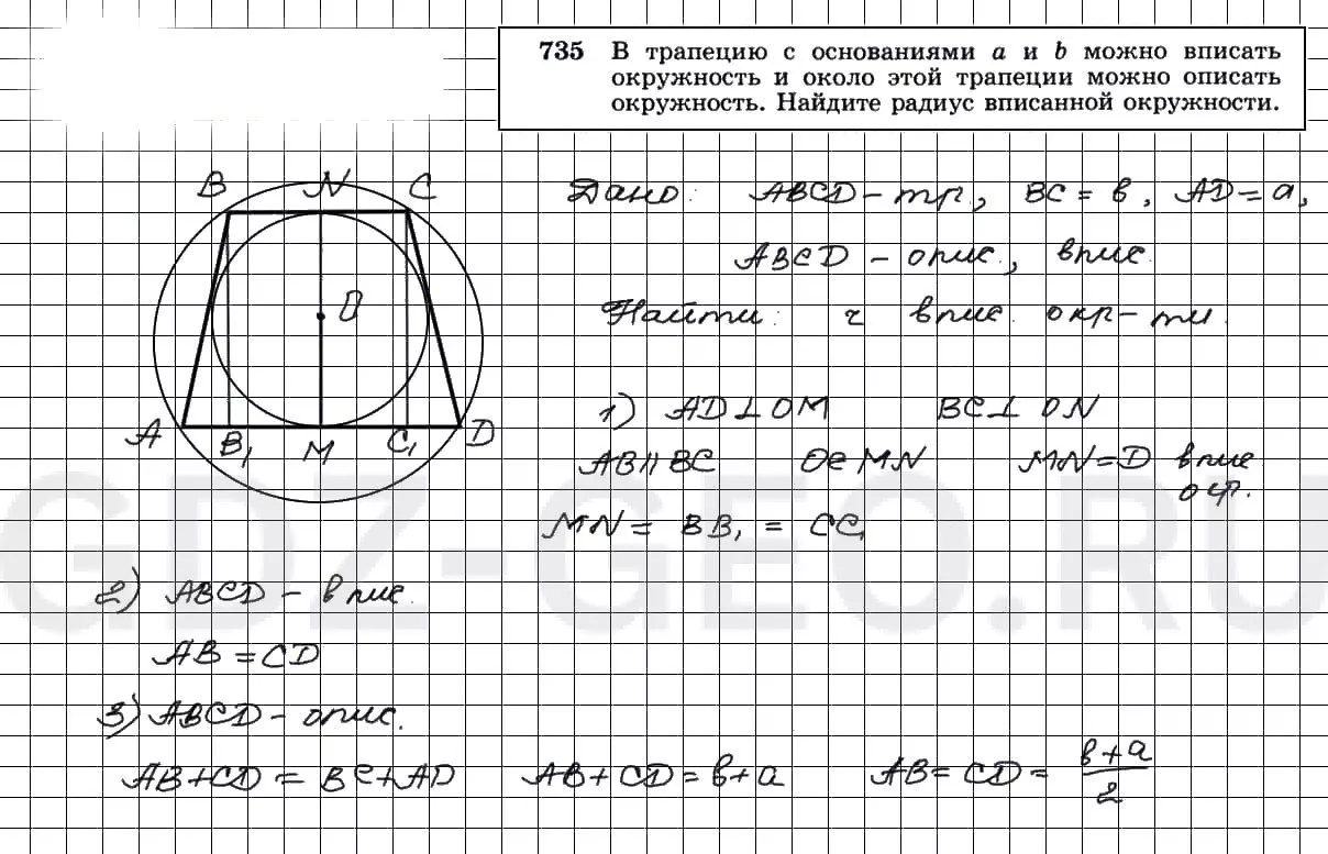 В трапецию с основаниями и можно вписать окружность и около этой трапеции можно описать окружность. Найдите радиус вписанной окружности.