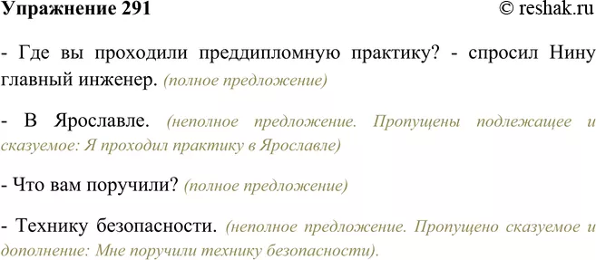 291. В каких предложениях пропущены главные или второстепенные члены? Какие именно члены предложения пропущены?
