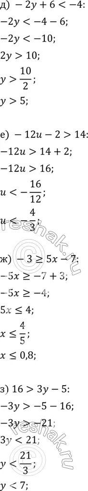 е) -12u - 2 > 14;