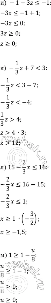 к) -1/3z + 7 < 3;