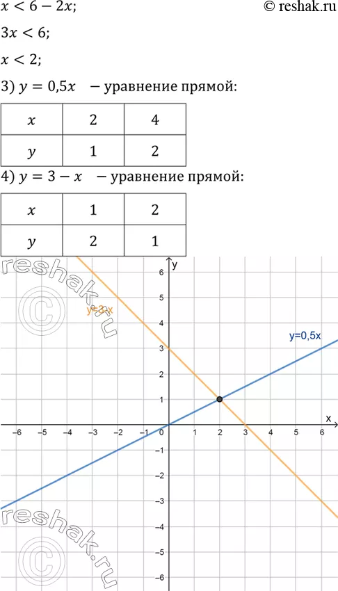 б) f(x) = 0,5x, g(x) = 3 - x.
