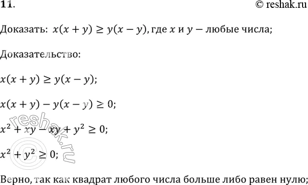 11. Докажите, что для любых чисел х и у х(х + у) > у(х - у).