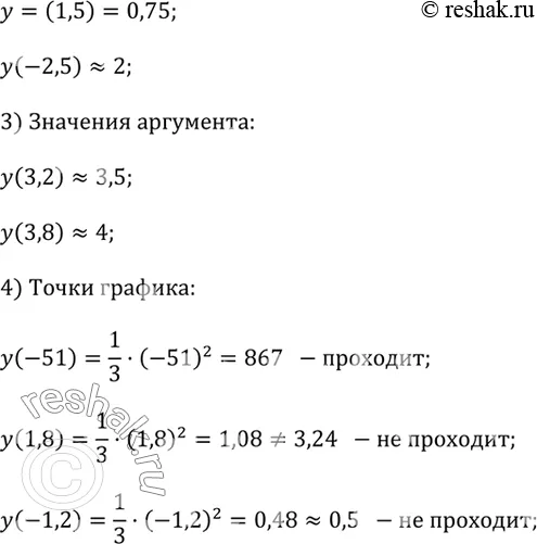4) Проходит ли график функции через точку (-51; 867)? (1,8; 3,24)? (-1,2; 0,5)?
