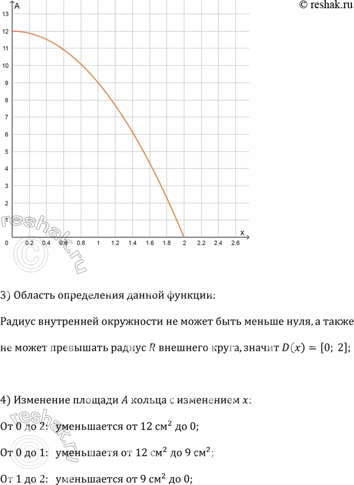 4) Опишите, как меняется площадь А кольца с изменением х от О до 2; от 0 до 1; от 1 до 2.