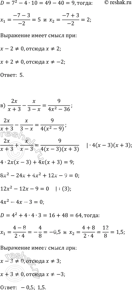 в) 2x/(x + 3) - x/(3 - x) = 9/(4x^2 - 36);