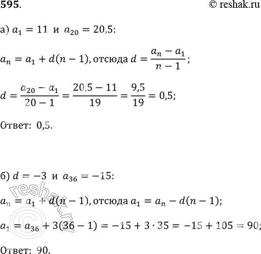 595. Последовательность (а_n) — арифметическая прогрессия. Найдите: