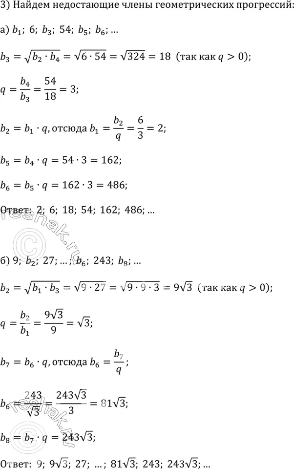 3) Найдите члены последовательности, обозначенные буквами, если известно, что эта последовательность — геометрическая прогрессия, в которой q > 0: