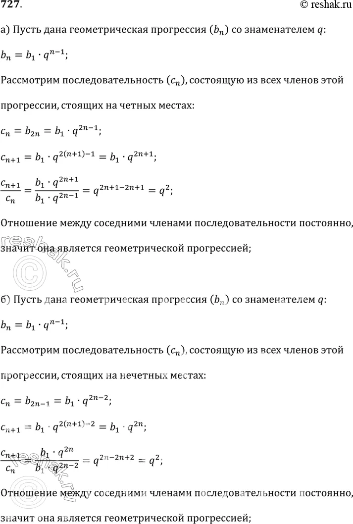 727. Дана геометрическая прогрессия (b_n). Докажите, что: