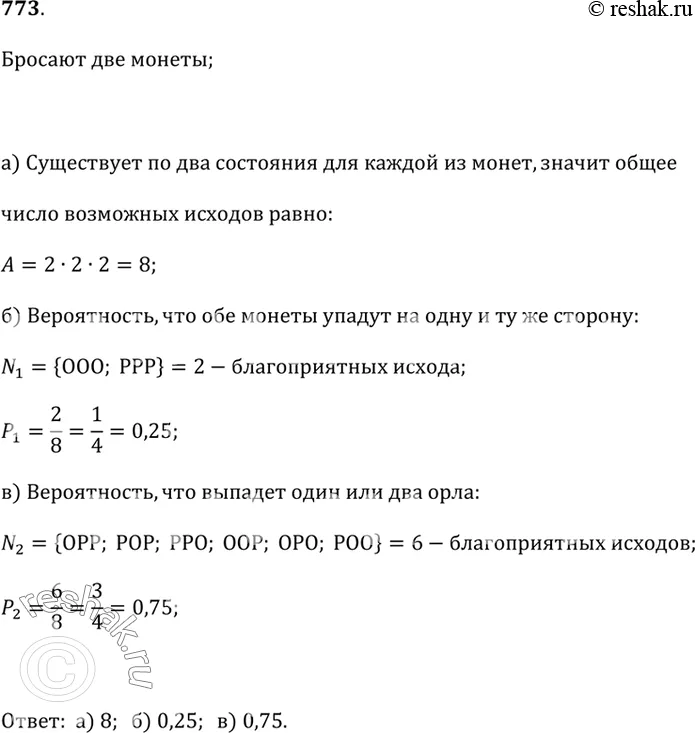 773. Одновременно бросают 3 монеты.