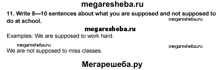 Write 8—10 sentences about what you are supposed and not supposed to do at school. Examples: We are supposed to work hard. We are not supposed to miss classes.