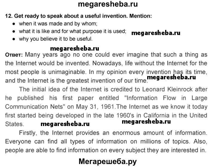 Get ready to speak about a useful invention. Mention: •when it was made and by whom; •what it is like and for what purpose it is used; •why you believe it to be useful.