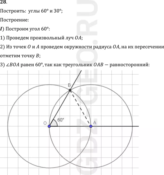 1) Построим угол угол BOA=60° так, как это сказано в пункте I;